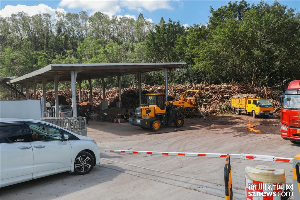 據(jù)了解,9月15日臺風到來前,組織運營單位深圳鐵漢生態(tài)公司對全場車間及工人宿舍進行加固,機器設(shè)備進行維護保養(yǎng),騰出場地準備接收被臺風刮斷送來的樹枝。16日臺風來時,敞開大門接收樹枝,用LED廣告牌發(fā)布通知,優(yōu)先接收綠化處管養(yǎng)的深南、北環(huán)、濱河、濱海、南坪快速等主干道樹枝。