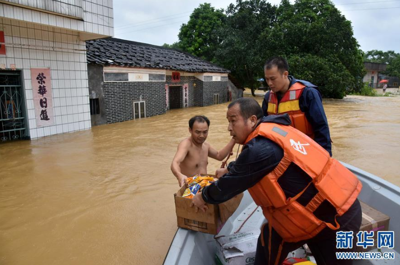 9月18日,在廣東省陽(yáng)江市陽(yáng)春市,人們用筏子運(yùn)送飲用水。 新華社記者張加揚(yáng)攝