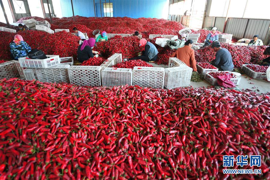 9月16日,阜城縣王集鄉(xiāng)南張莊村農(nóng)民在整理收獲的辣椒。近年來,河北省阜城縣王集鄉(xiāng)在推進(jìn)產(chǎn)業(yè)富民過程中,積極引導(dǎo)農(nóng)民調(diào)整農(nóng)業(yè)產(chǎn)業(yè)結(jié)構(gòu),按照品種特色化、種植規(guī)?;?、產(chǎn)銷一體化的“公司+基地+農(nóng)戶”的經(jīng)營(yíng)模式,鼓勵(lì)農(nóng)民發(fā)展特色辣椒種植,推行“訂單種植”模式,開辟出了一條農(nóng)民創(chuàng)收新路徑。目前,阜城縣王集鄉(xiāng)辣椒種植面積3100余畝,每畝年收益2500元以上,帶動(dòng)當(dāng)?shù)剞r(nóng)民實(shí)現(xiàn)增收。新華社記者朱旭東攝