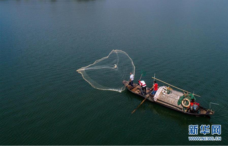 9月18日,漁民們乘坐漁船在富春江里捕撈江鮮(無人機拍攝)。