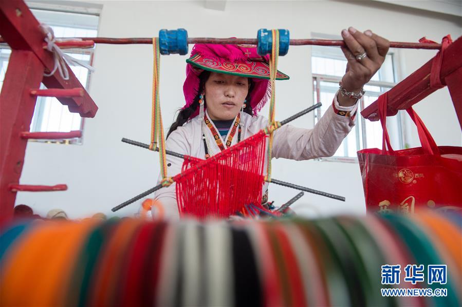 員工卓瑪在鹽湖鄉(xiāng)羌麥村民族手工編織廠工作(9月19日攝)。 2018年,西藏阿里地區(qū)革吉縣鹽湖鄉(xiāng)政府自籌資金成立羌麥村民族手工編織廠,編織廠將當(dāng)?shù)貍鹘y(tǒng)手工編織技藝與市場(chǎng)需求相結(jié)合,生產(chǎn)手提包、圍脖、腰帶、毛毯、藏式頭巾等產(chǎn)品,并參加旅游推介活動(dòng),拓寬編織品銷(xiāo)售渠道,助力當(dāng)?shù)鼐用衩撠殹?新華社記者 劉東君 攝