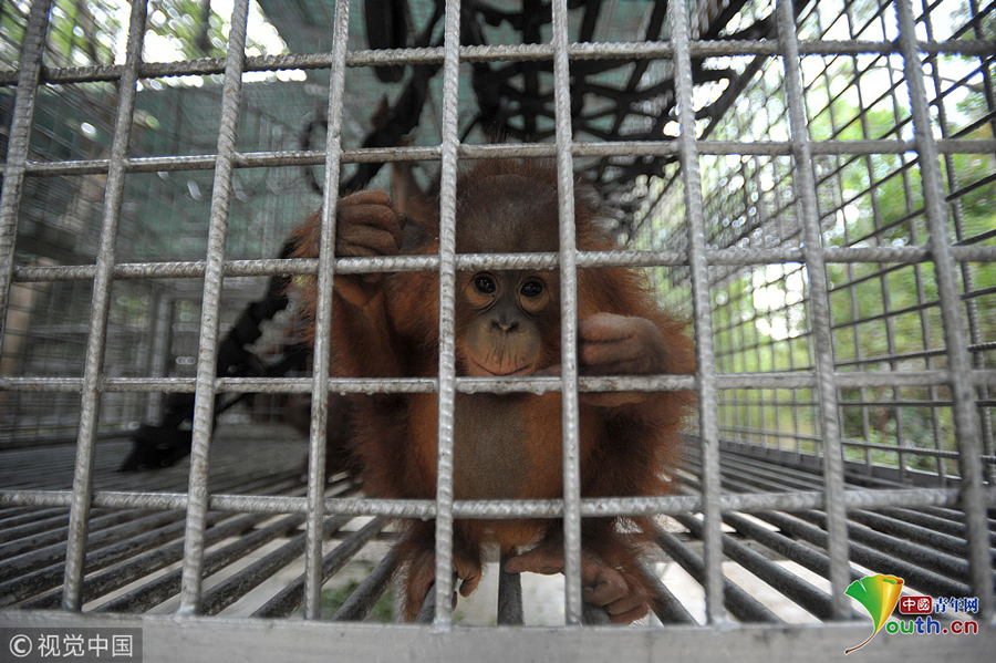 當(dāng)?shù)貢r間2018年9月18日,印尼加里曼丹克塔邦,國際動物救援(IAR)猩猩安全與保護中心里。圖片作者:Newscom