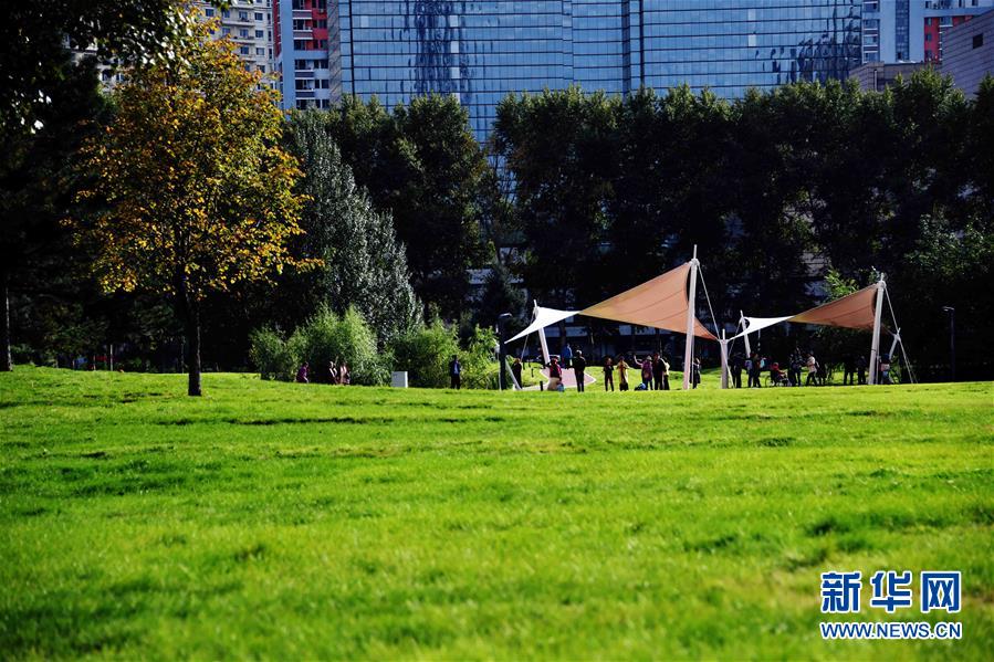 9月25日,市民在湘江公園內游玩。 當日,哈爾濱市湘江公園正式開園迎客。這個集休閑、健身、娛樂、觀賞于一體的多功能都市公園由高爾夫球場改造而成,免費對市民和游客開放。 新華社記者 王建威 攝