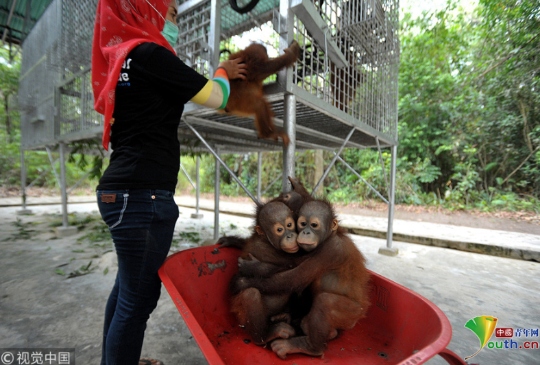 猩猩寶寶將在學(xué)校里學(xué)會爬、玩和保護自己,最后它們會被放歸自然棲息地。圖片作者:Newscom