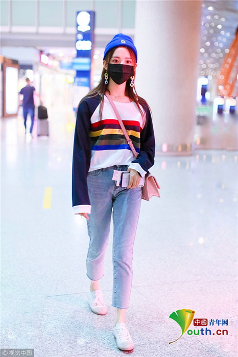 2018年9月25日,北京,“錦鯉少女”楊超越現(xiàn)身機(jī)場,她身穿“彩虹裝”青春無敵,戴著糖果色耳環(huán),細(xì)節(jié)處可愛吸睛。