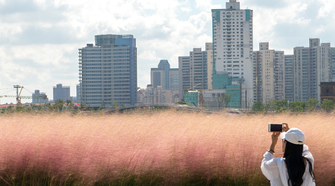 2018年9月26日,江蘇鎮(zhèn)江。金秋時(shí)節(jié),美景醉人。這兩天,句容寶華山下大片的粉黛亂子草全部泛紅,形成一片夢幻的粉色草海,如云霞似粉霧,美的令人窒息,為這個(gè)金秋增添了一道浪漫的氣息。