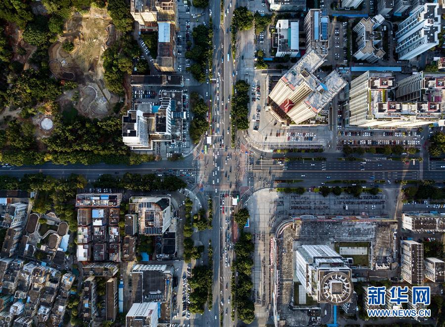 這是廣西北海市北海大道和北京路交匯處街景(9月27日無人機(jī)拍攝)。
