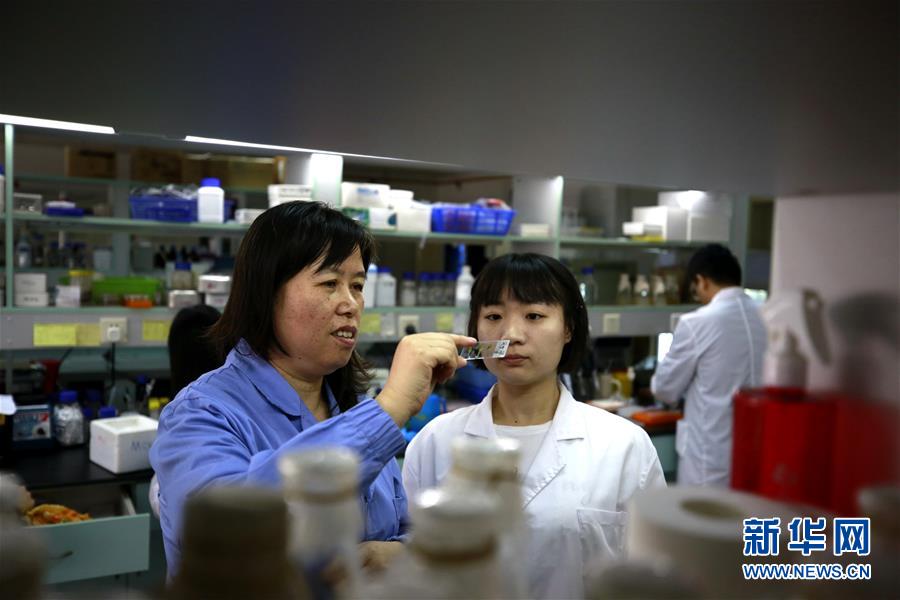 中科院植物生理生態(tài)研究所鄭慧瓊研究員(左)和學生在實驗室研究擬南芥(9月14日攝)。新華社記者張建松攝