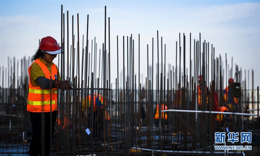 10月1日,中建三局三公司建筑工人在南京世茂外灘新城項目現(xiàn)場施工。當日是國慶節(jié),許多勞動者堅守在工作一線,在崗位上度過節(jié)日。新華社記者李響攝