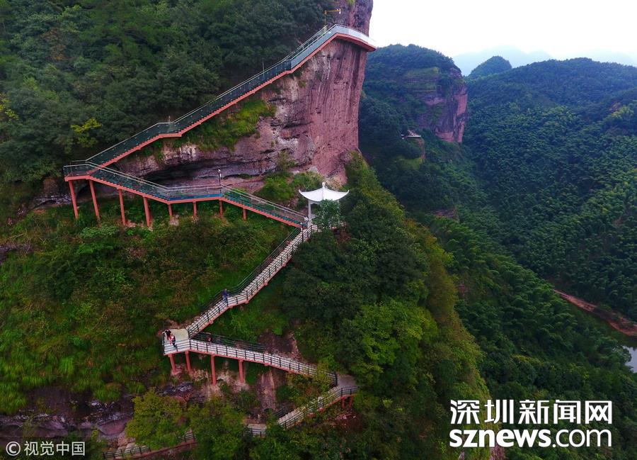 武義縣大紅巖景區(qū)在227500平方懸崖上建造的玻璃桟道,通過有關(guān)部驗收,10月1日將開放接待游客。武義縣大紅巖是國家級風(fēng)景名勝區(qū),今年景區(qū)利用長650米、高350米的懸崖峭壁建造玻璃桟道,為景區(qū)又增添了一道壯觀的景點。