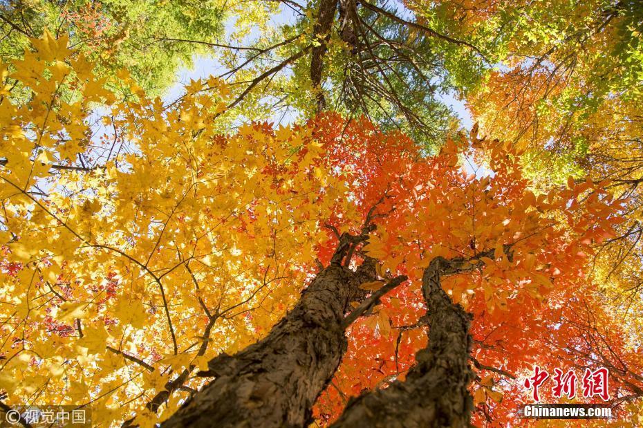 10月5日,吉林省磐石市取柴河鎮(zhèn)西大地村雞爪子溝的楓葉經(jīng)過秋霜的洗禮進(jìn)入了最佳觀賞期,農(nóng)民在山上賣土特產(chǎn)。 圖片來源:視覺中國