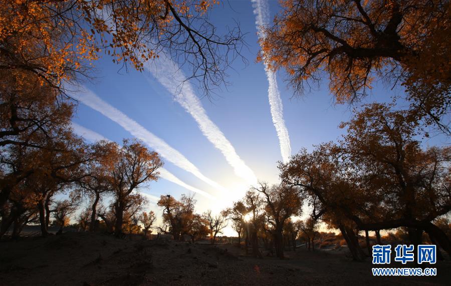 大片的胡楊樹葉由綠變黃,一眼望去,陽光下金色的樹葉襯著湛藍(lán)的天空于風(fēng)中婆娑起舞。