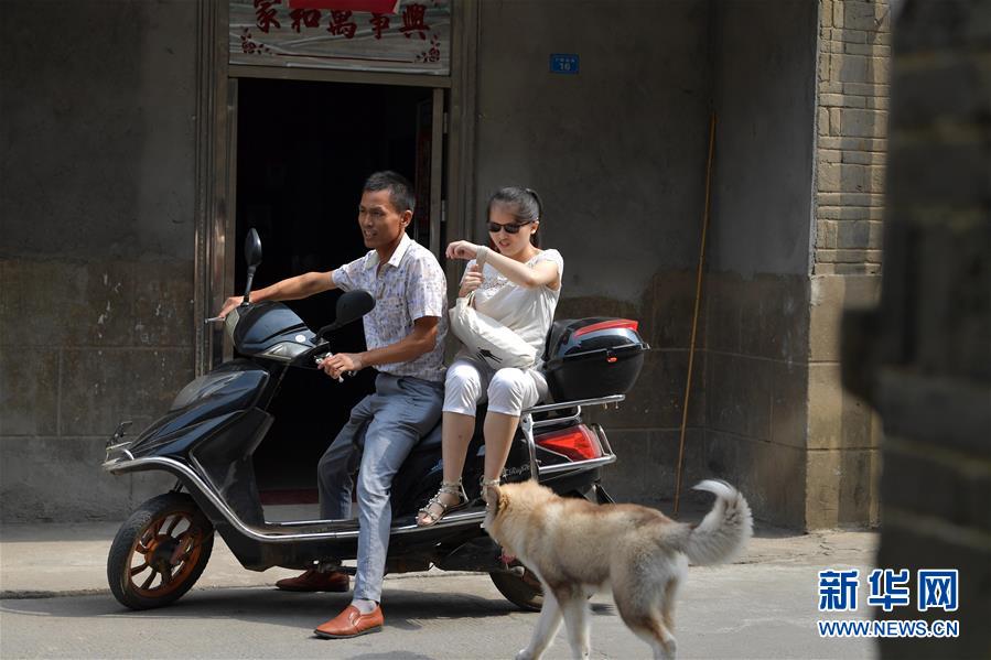楊虹的父親楊裕生(左)送她去按摩院上班(9月26日攝)。新華社記者 彭昭之 攝