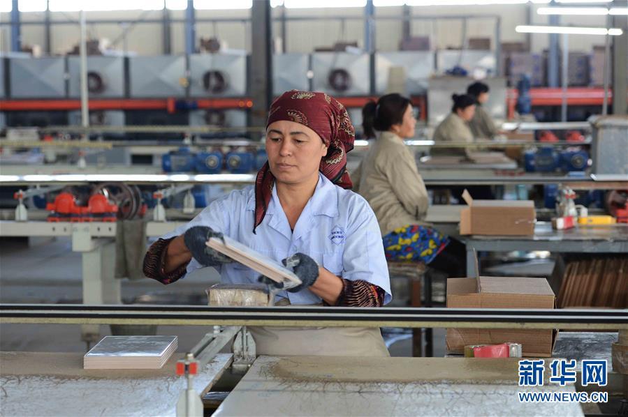 2017年5月1日,工人在位于烏茲別克斯坦錫爾河州的鵬盛工業(yè)園區(qū)瓷磚生產(chǎn)車間工作。鵬盛工業(yè)園是中國民營企業(yè)直接在烏投資建立的首個(gè)中烏合資工業(yè)園區(qū)。