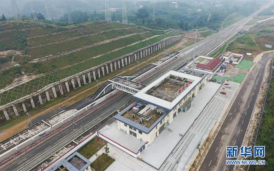 成雅鐵路成朝段朝陽湖站(10月14日無人機拍攝)。新華社記者薛玉斌攝