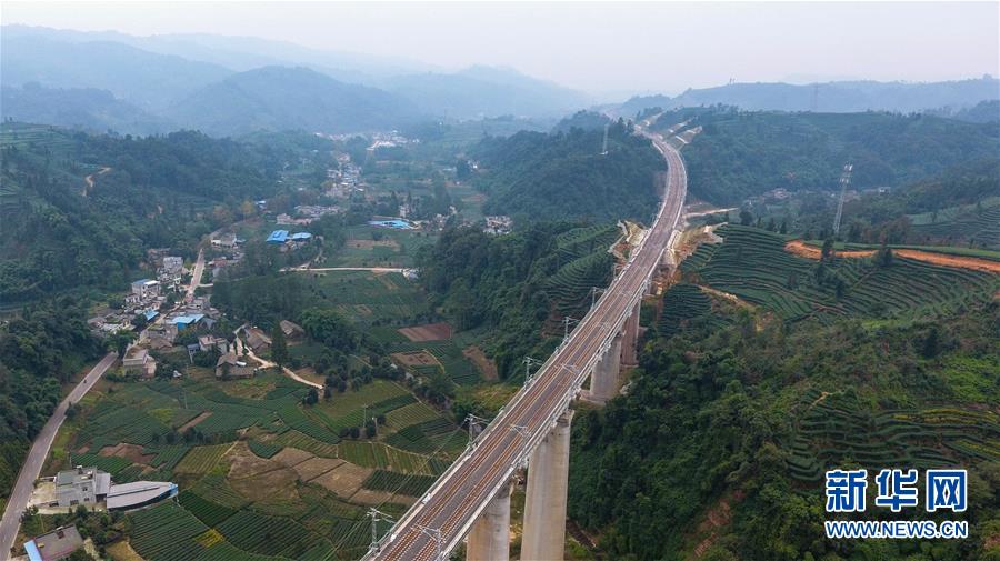 這是10月11日無人機拍攝的川藏鐵路成雅段一座鐵路橋。新華社記者薛玉斌攝