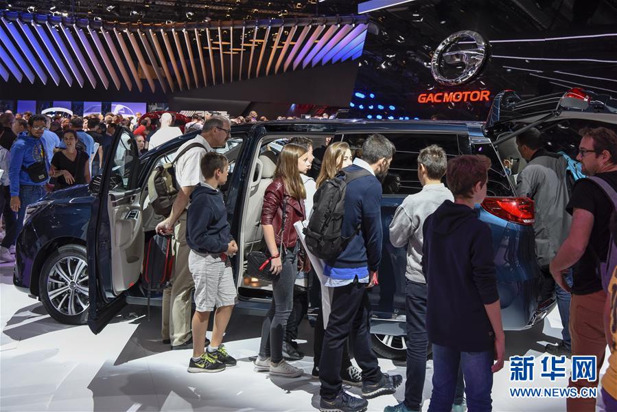 10月14日,在法國(guó)巴黎國(guó)際車(chē)展上,人們參觀(guān)廣汽傳祺品牌展臺(tái)。 當(dāng)日,2018年巴黎國(guó)際車(chē)展閉幕。據(jù)主辦方統(tǒng)計(jì),超過(guò)100萬(wàn)人次參觀(guān)了本屆車(chē)展。 新華社記者 陳益宸 攝