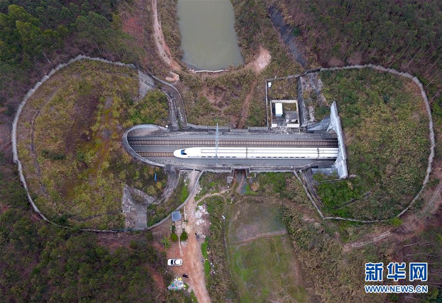 一列動(dòng)車穿越南寧郊區(qū)一處隧道(2月11日無(wú)人機(jī)拍攝)。 廣西壯族自治區(qū)成立60年來(lái),鐵路建設(shè)發(fā)生翻天覆地的變化。來(lái)自中國(guó)鐵路南寧局集團(tuán)有限公司的數(shù)據(jù)顯示,1958年廣西鐵路總里程為1346.3公里,如今廣西鐵路總里程達(dá)5191公里。廣西與周邊相鄰省份間實(shí)現(xiàn)動(dòng)車“公交化”開(kāi)行。此外,北部灣港—重慶班列、東盟海產(chǎn)品冷鏈班列、“百色一號(hào)”果蔬專列等的開(kāi)通和運(yùn)營(yíng),強(qiáng)化了鐵路供給的針對(duì)性和有效性。鐵路成為助推廣西經(jīng)濟(jì)社會(huì)快速發(fā)展的“大動(dòng)脈”。 新華社記者陸波岸攝