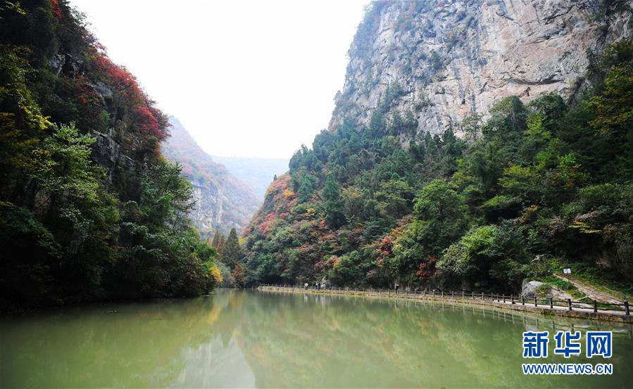 金秋時節(jié),甘肅省隴南市成縣西狹頌景區(qū)層林盡染,峽內(nèi)石崖、池潭、樹木、山峰構(gòu)成五彩斑斕的秋日美景圖,引人入勝。