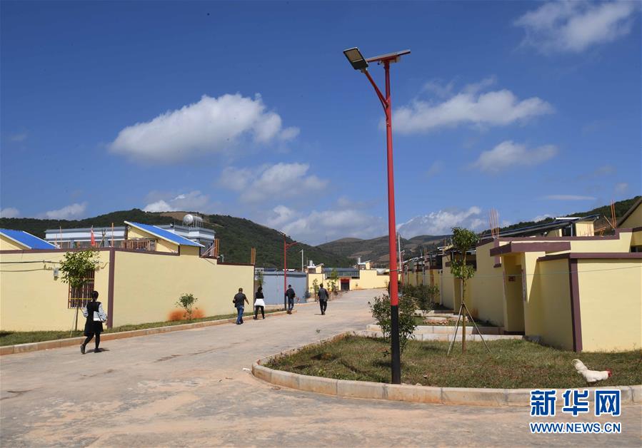 10月16日,人們行走在硯山縣小補(bǔ)佐村的道路上。 云南省文山壯族苗族自治州硯山縣稼依鎮(zhèn)小補(bǔ)佐村有55戶(hù)200多名壯族群眾曾經(jīng)居住在大山深處。2017年10月,在政府的幫扶下,小補(bǔ)佐村易地扶貧建設(shè)新村,村民全部搬遷入住新居。 新華社記者 楊宗友 攝