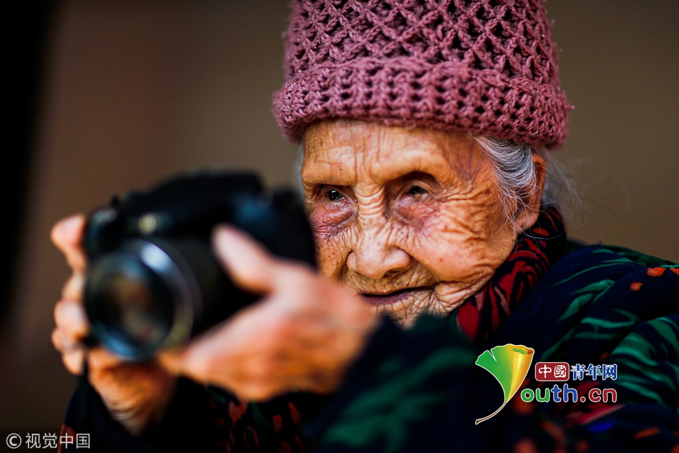 2017年03月02日,廣西壯族自治區(qū)桂林市恭城瑤族自治縣蓮花鎮(zhèn)蓮花街上,有一個慈眉善目的老人李玉珍,大家都親切地叫她“容伯娘”。她不僅是鎮(zhèn)上碩果僅存的兩位百歲老人之一,還是鎮(zhèn)上那個最老照相館的攝影師。老人拿起數(shù)碼相機(jī)拍攝照片的眼神依舊犀利。圖片作者:游擁軍/視覺中國