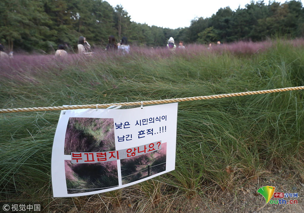 公園并沒有修復(fù)遭破壞區(qū)域,而是用繩索圍起并掛上批判性告示,呼吁游客腳下留情。圖片作者:Yonhap News Agency