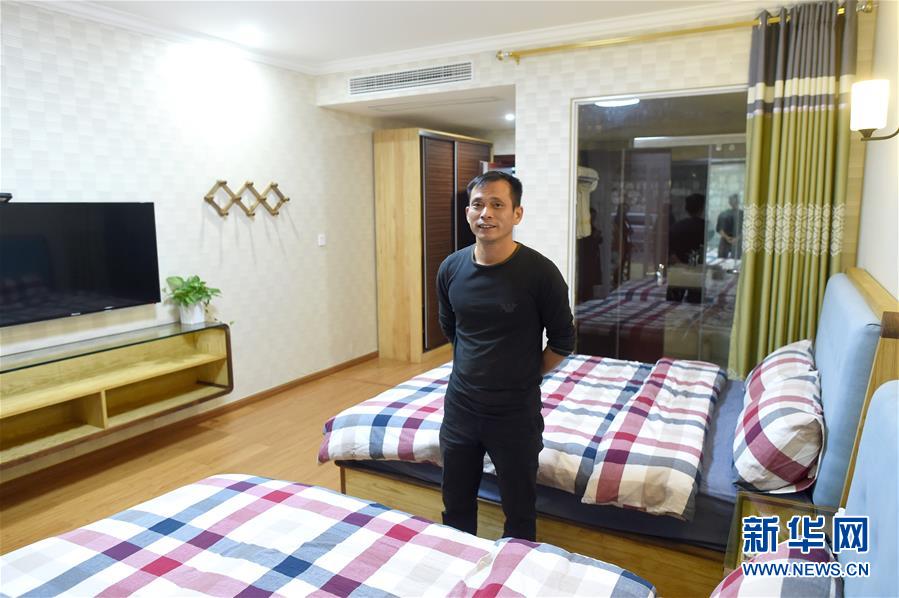 棠里塢村民宿負(fù)責(zé)人徐學(xué)德在民宿客房內(nèi)(10月16日攝)。 浙江諸暨市陳宅鎮(zhèn)棠里塢村積極盤活閑置資源,吸引社會(huì)資本參與鄉(xiāng)村振興。棠里塢村一處面積2000多平方米的廢棄豬場,經(jīng)過改造成為民宿,每到節(jié)假日客房供不應(yīng)求。 新華社記者 韓傳號(hào) 攝