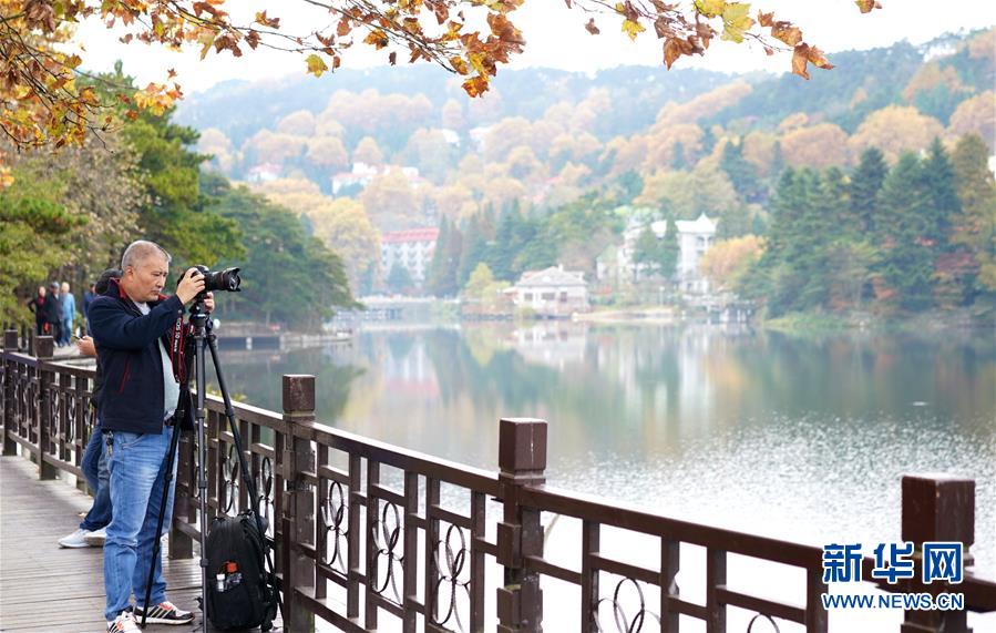 游客在九江市廬山風景區(qū)內(nèi)的如琴湖旁攝影(10月20日攝)?!⌒氯A社記者 胡晨歡 攝