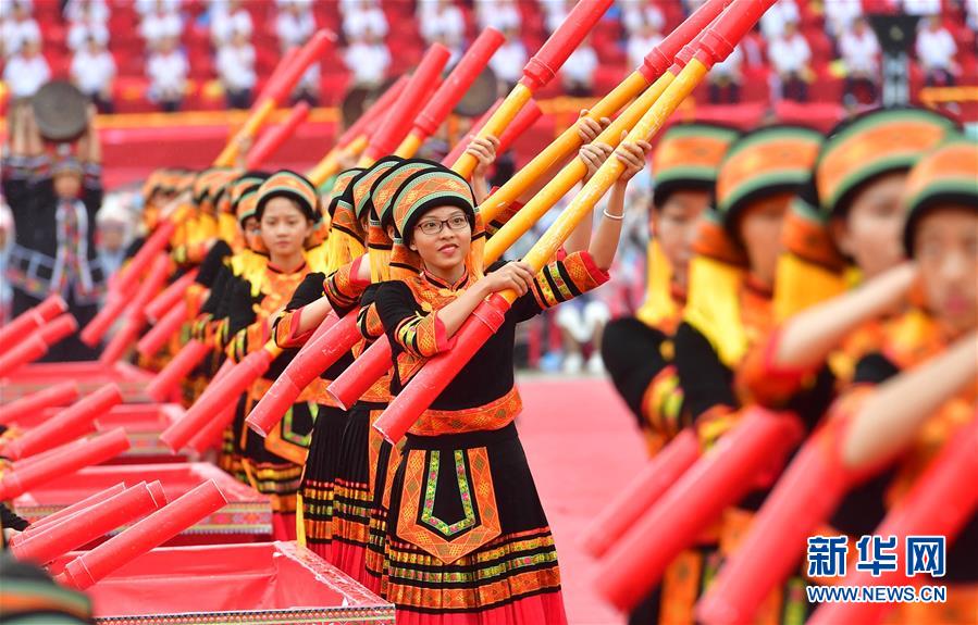 10月20日,各族同胞在廣西大化瑤族自治縣江濱文化廣場表演節(jié)目,慶??h慶?!⌒氯A社記者黃孝邦攝