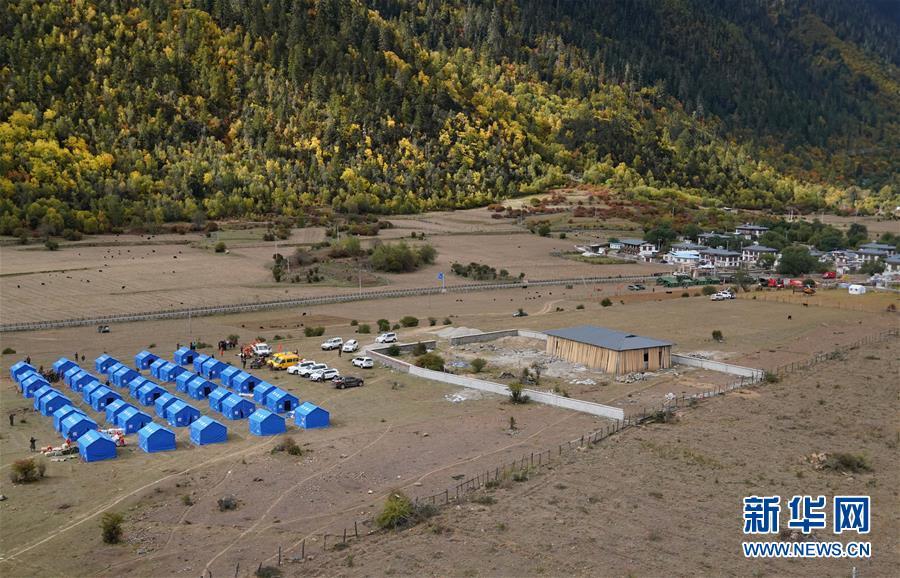 10月19日拍攝的在米林縣派鎮(zhèn)達林村搭建的安置點。 記者從西藏自治區(qū)林芝加拉村雅魯藏布江堰塞湖災情應急搶險工作第二場新聞發(fā)布會上獲悉,19日13時30分,雅魯藏布江米林縣堰塞體上游水位超過堰塞體,開始自然過流,上游水位正在緩慢下降。目前,各項搶險救援工作正在有序開展。 新華社記者 普布扎西 攝