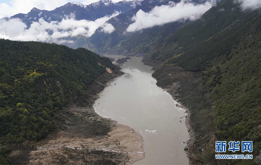 雅魯藏布江上的堰塞湖和堰塞體(10月18日攝)。 新華社記者 覺(jué)果攝