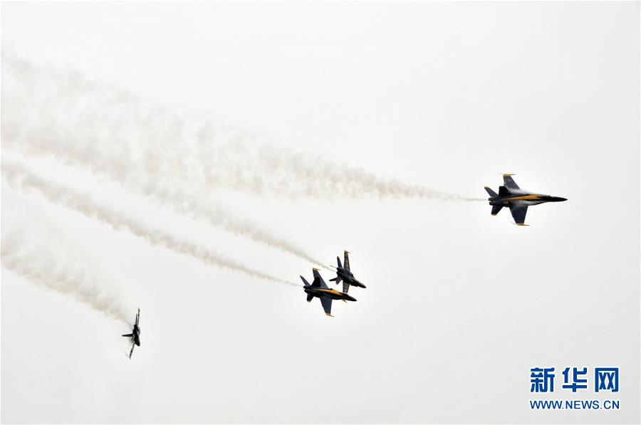 10月20日,在美國休斯敦,美國海軍“藍(lán)天使”飛行表演隊(duì)進(jìn)行飛行表演。 新華社記者劉立偉攝