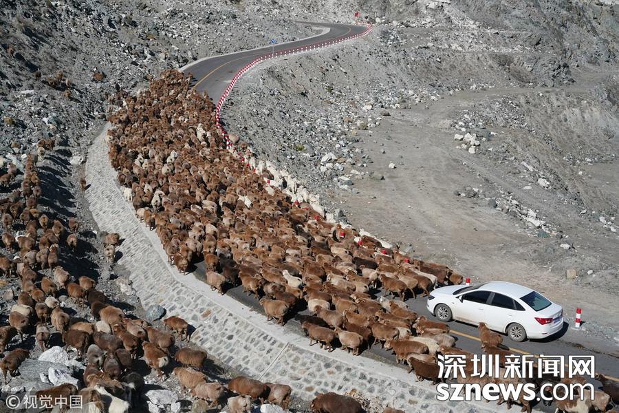 車輛不得不停下來,仿佛被無窮無盡的羊群吞沒了,場(chǎng)面非常壯觀。