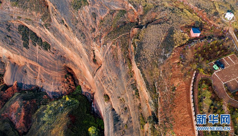 10月21日無人機拍攝的王家灣丹霞地貌。 新華社記者陶明攝