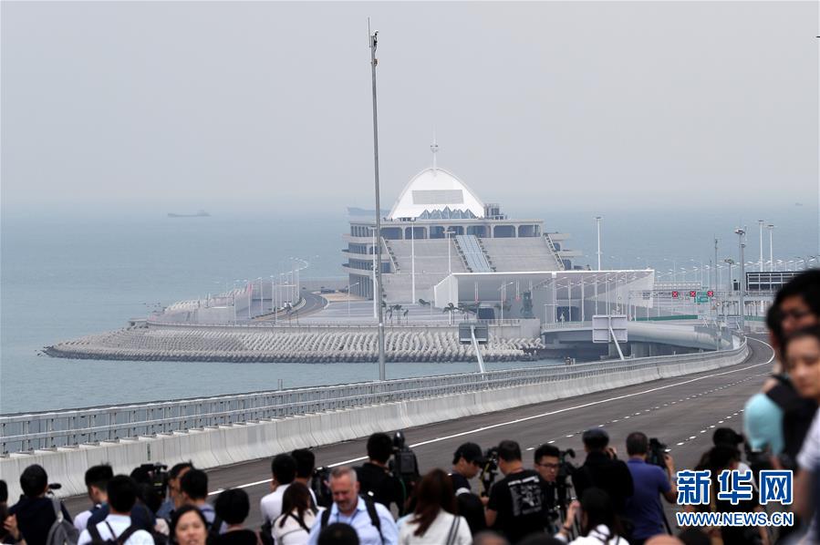 10月19日,媒體記者在港珠澳大橋香港連接路部分參觀。 港珠澳大橋開通在即。 新華社記者 李鋼 攝