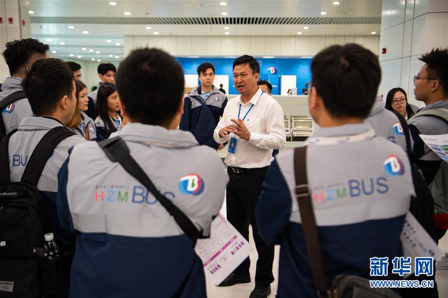 港珠澳大橋澳門邊檢大樓穿梭巴士員工在接受培訓(10月19日攝)。 港珠澳大橋?qū)⒂诒驹?4日通車運營,成為連接香港、澳門的新通道。記者19日驅(qū)車前往澳門口岸實地采訪,了解口岸內(nèi)部設置和準備工作情況。 新華社記者 張金加 攝