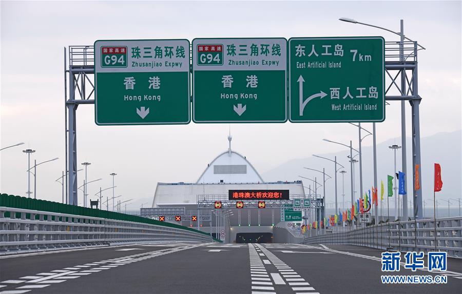 港珠澳大橋西人工島隧道口(2018年10月20日攝)。 金秋十月,伶仃洋上海天一色、潮聲陣陣,依傍著這片中國(guó)南海水域的城市群迎來(lái)深具意義的一天。 10月23日上午,港珠澳大橋開(kāi)通儀式在廣東珠海舉行,中共中央總書記、國(guó)家主席、中央軍委主席習(xí)近平出席儀式,宣布大橋正式開(kāi)通。 碧波之上,一橋飛架香港、澳門、珠海三地,以氣貫長(zhǎng)虹的“中國(guó)跨度”,飛越滄海百年的歷史風(fēng)云,展現(xiàn)當(dāng)代中國(guó)的雄健風(fēng)采。 新華社記者梁旭攝