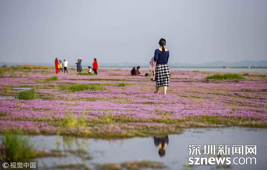 深圳新聞網(wǎng)訊 2018年10月23日,南昌,游人在江西鄱陽湖都昌濕地蓼子花海內(nèi)游玩。連日來,中國第一大淡水湖江西鄱陽湖濕地大面積蓼子花開放,秋景宜人,紫色的花海吸引大批游客前來賞景游玩。