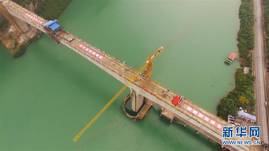 渝懷鐵路涪秀二線重點工程——烏江右線大橋主跨成功合龍