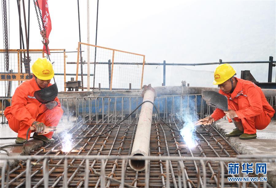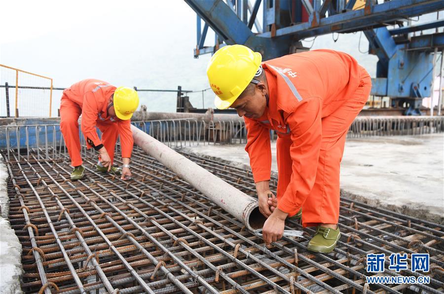 10月23日,在重慶涪陵,施工人員在渝懷鐵路涪秀二線重點工程——烏江右線大橋主跨合龍現場作業(yè)。 當日,由中鐵四局承建的渝懷鐵路涪秀二線重點工程——烏江右線大橋主跨成功合龍,標志著大橋主體工程全部順利結束。烏江右線大橋項目全程460.1米,主跨192米,跨越烏江和319國道。在兩年多的建設過程中,施工人員攻克了“不等高墩”“不對稱邊跨”“邊跨入隧”等多個技術難題。 新華社記者王全超攝