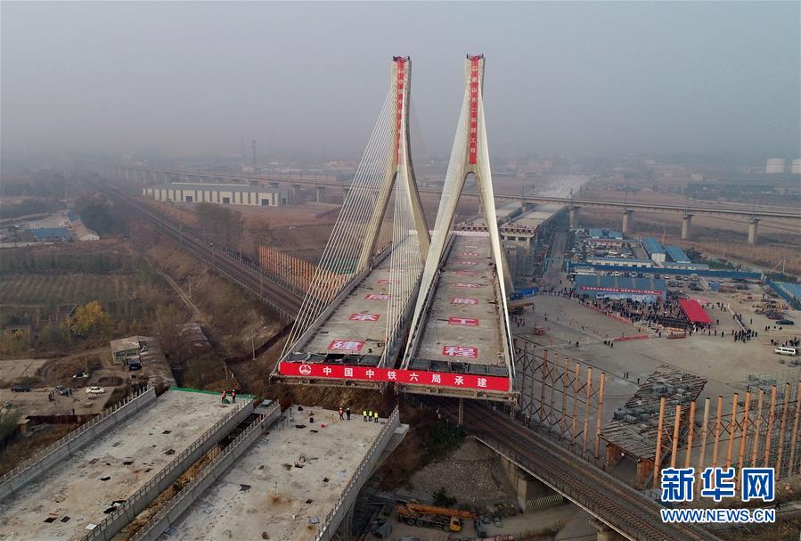 鄭萬(wàn)高鐵1.65萬(wàn)噸大橋轉(zhuǎn)體成功