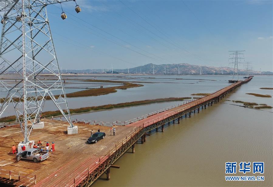 當日,福建省重點工程——莆田埭頭風電220千伏送出工程第一根導線順利牽引出線。為避免在海上構筑圍堰,工程采用全國首創(chuàng)的全路徑鋼棧橋橫跨海灣方式,減少了土地占用,有助于保護生態(tài)環(huán)境,為跨海電力施工提供了實踐經(jīng)驗。