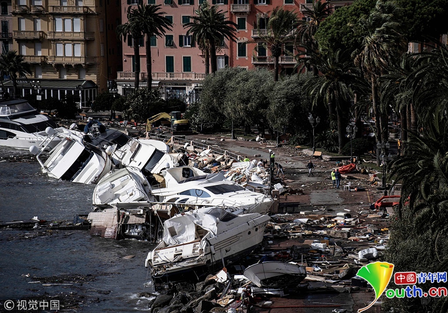暴風(fēng)雨襲擊當(dāng)?shù)馗劭?,并摧毀了大壩的一部分?/p>