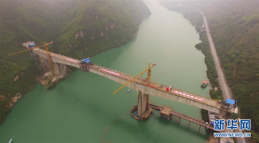 渝懷鐵路涪秀二線重點(diǎn)工程——烏江右線大橋主跨成功合龍
