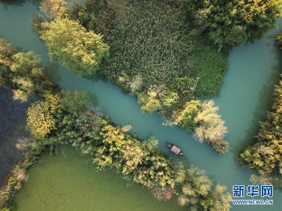 這是10月29日無人機(jī)拍攝的西溪濕地。新華社記者翁忻旸攝