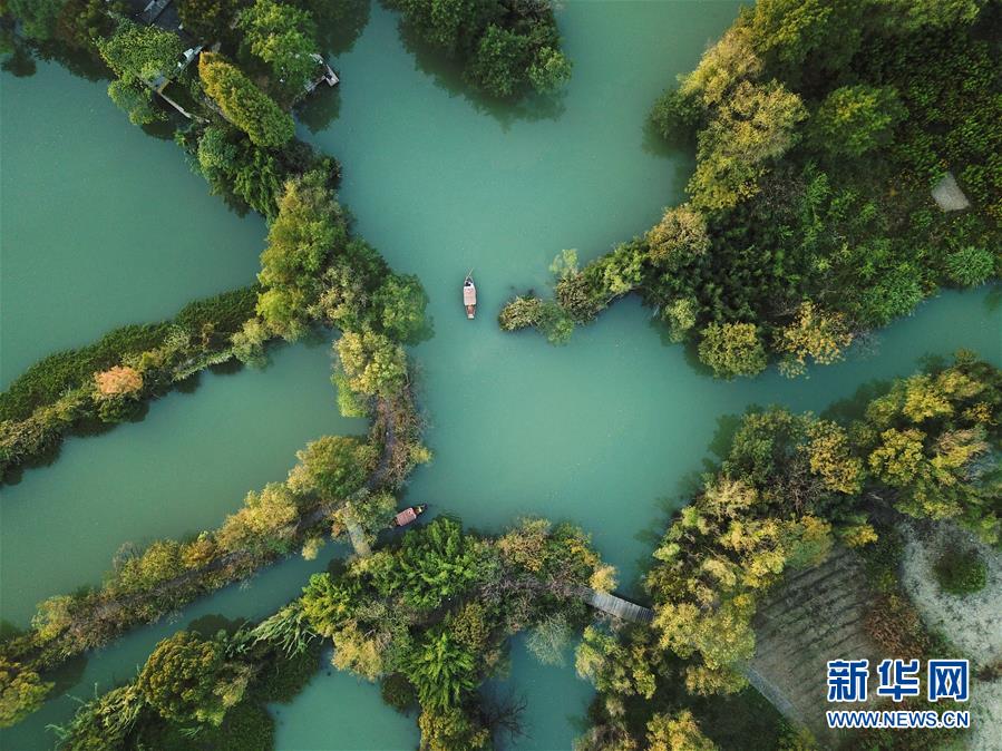 這是10月29日無人機(jī)拍攝的西溪濕地。 新華社記者翁忻旸攝
