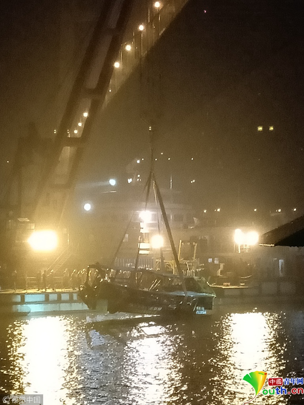 10月31日晚,重慶萬州長(zhǎng)江二橋墜江公交車被打撈出水。記者在重慶萬州墜江公交車救援現(xiàn)場(chǎng)看見,公交車被四條繩索從四個(gè)方向包圍,車身明顯變形,車窗玻璃全部破裂。