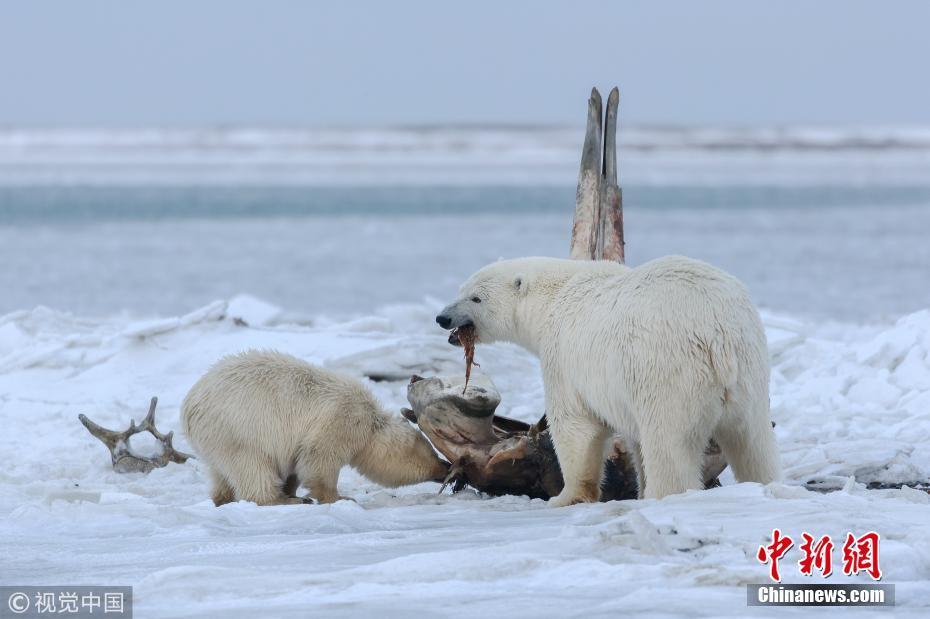 11月1日訊(具體拍攝時(shí)間不詳),美國(guó)阿拉斯加州,一只北極熊媽媽帶著幼崽們外出覓食,發(fā)現(xiàn)了一節(jié)長(zhǎng)4.5米的北極露脊鯨骸骨。75噸重的鯨魚對(duì)因紐皮亞特人來說是神圣的,他們每年要吃三次鯨魚,把骨頭放在指定的地方,讓北極熊吃完粘在骨頭上的碎肉。攝影師Eiji Itoyama為拍攝此照片在位于北冰洋邊緣的阿拉斯加卡克托維克村停留了5天。圖片來源:視覺中國(guó)