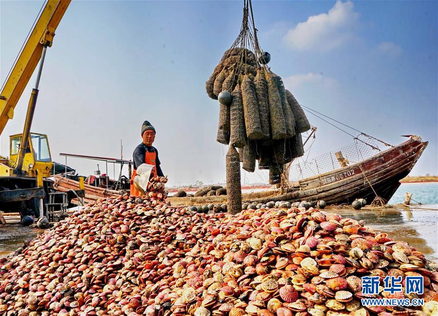 10月22日,樂(lè)亭縣姜各莊鎮(zhèn)南海濱村的養(yǎng)殖戶在漁船碼頭將收獲的扇貝卸下船。 近年來(lái),河北省樂(lè)亭縣通過(guò)建設(shè)海洋牧場(chǎng)科學(xué)布局養(yǎng)殖區(qū)域、采用新技術(shù)新模式提升養(yǎng)殖質(zhì)量、成立專業(yè)合作社實(shí)行集約化經(jīng)營(yíng)等措施,積極助推扇貝養(yǎng)殖加工產(chǎn)業(yè)發(fā)展,取得良好效益。據(jù)介紹,今年該縣扇貝養(yǎng)殖面積達(dá)32萬(wàn)畝,預(yù)計(jì)鮮貝產(chǎn)量達(dá)5.5萬(wàn)噸,產(chǎn)值3.8億元。 新華社記者楊世堯攝