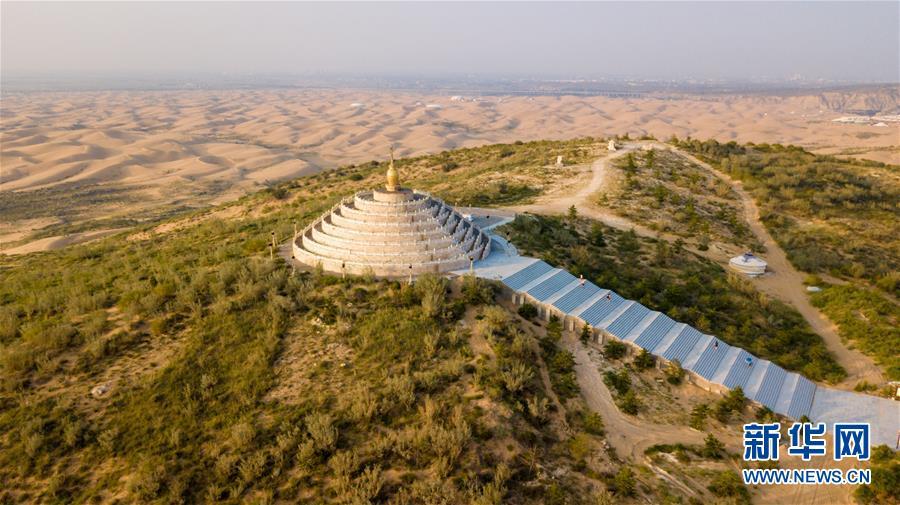 庫(kù)布其沙漠中銀肯塔拉敖包周邊種植的防風(fēng)固沙林(7月31日無(wú)人機(jī)拍攝)。 新華社記者彭源攝